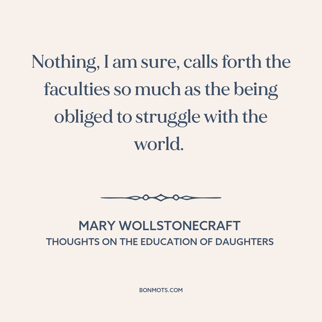 Nothing, I am sure, calls forth the faculties so much as the being obliged to struggle with the world.