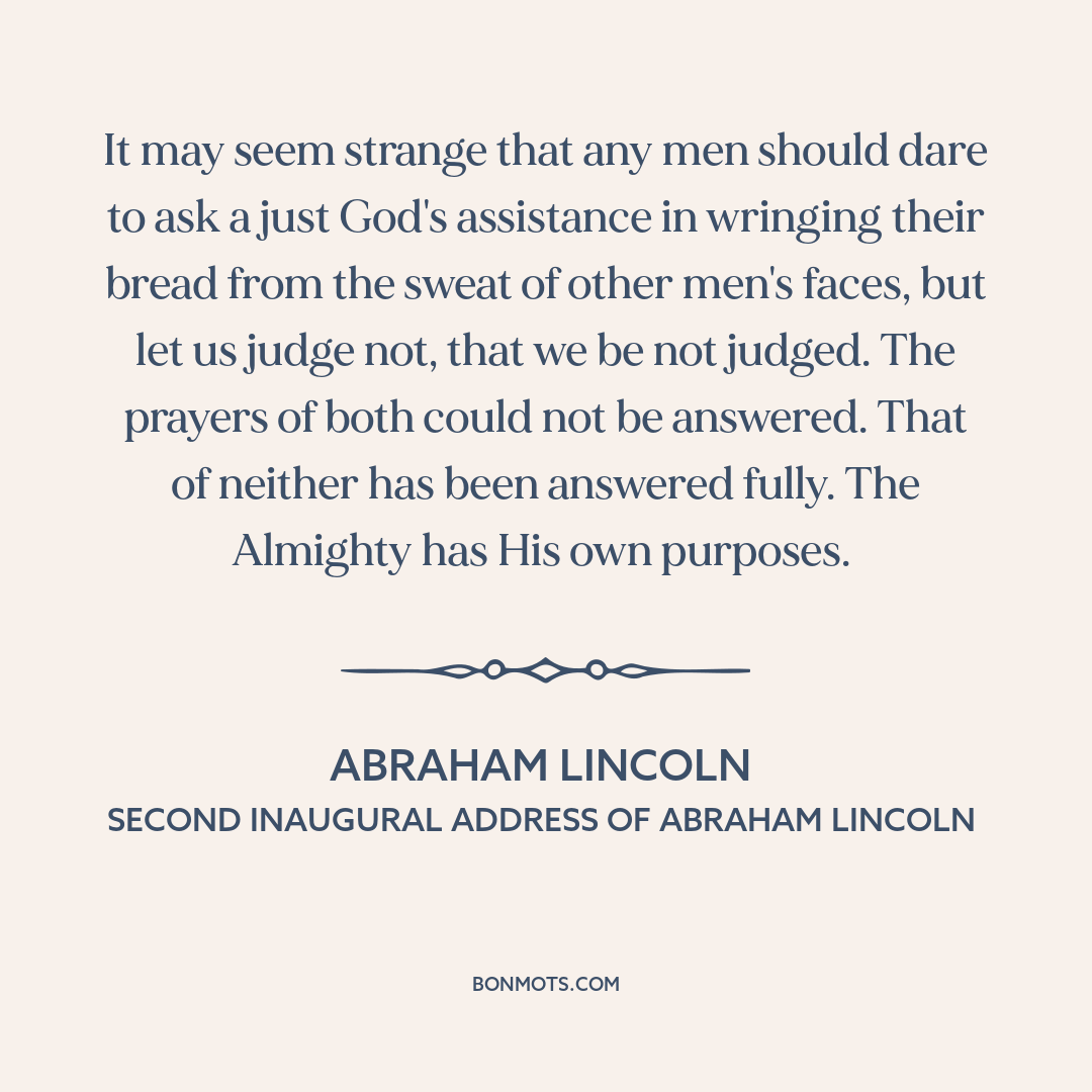 It may seem strange that any men should dare to ask a just God's assistance in wringing their bread from the sweat of other men's faces, but let us judge not, that we be not judged. The prayers of both could not be answered. That of neither has been answered fully. The Almighty has His own purposes.