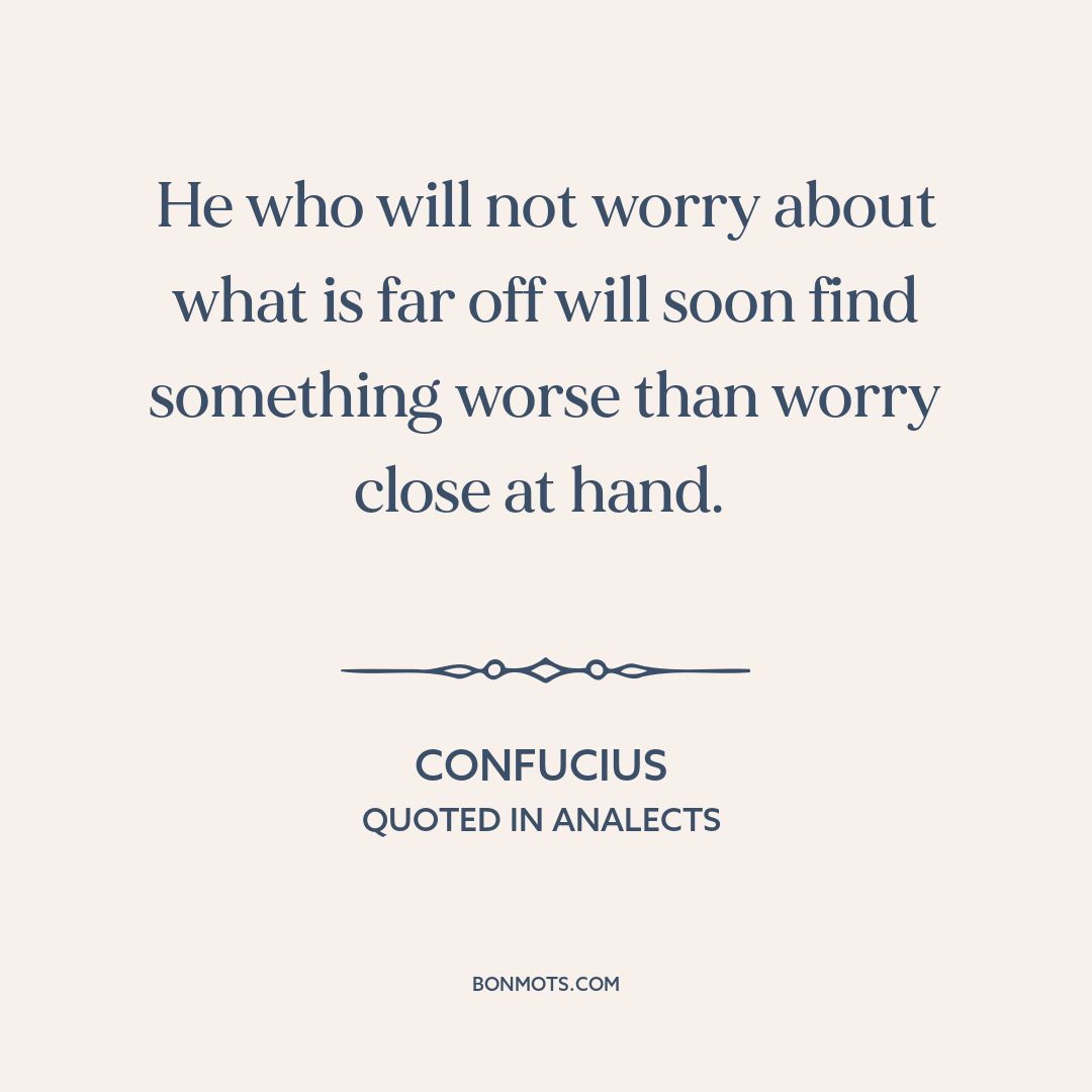 He who will not worry about what is far off will soon find something worse than worry close at hand.