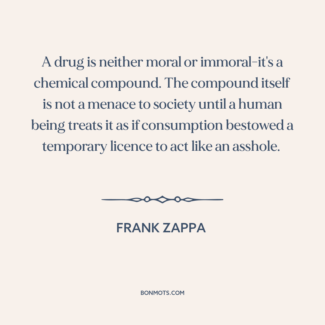 A drug is neither moral or immoral-it's a chemical compound. The compound itself is not a menace to society until a human being treats it as if consumption bestowed a temporary licence to act like an asshole.