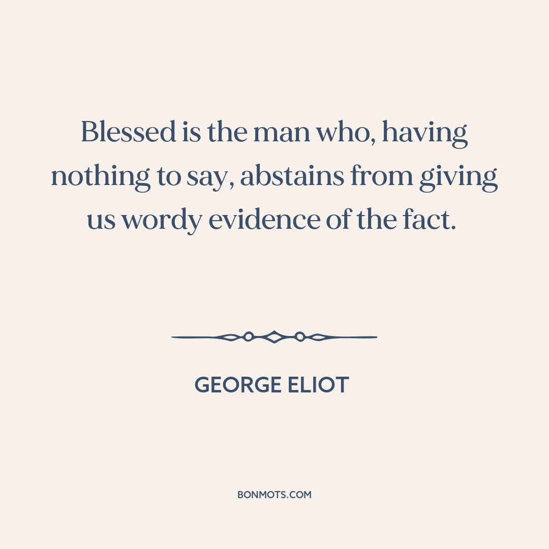Blessed is the man who, having nothing to say, abstains from giving us wordy evidence of the fact.