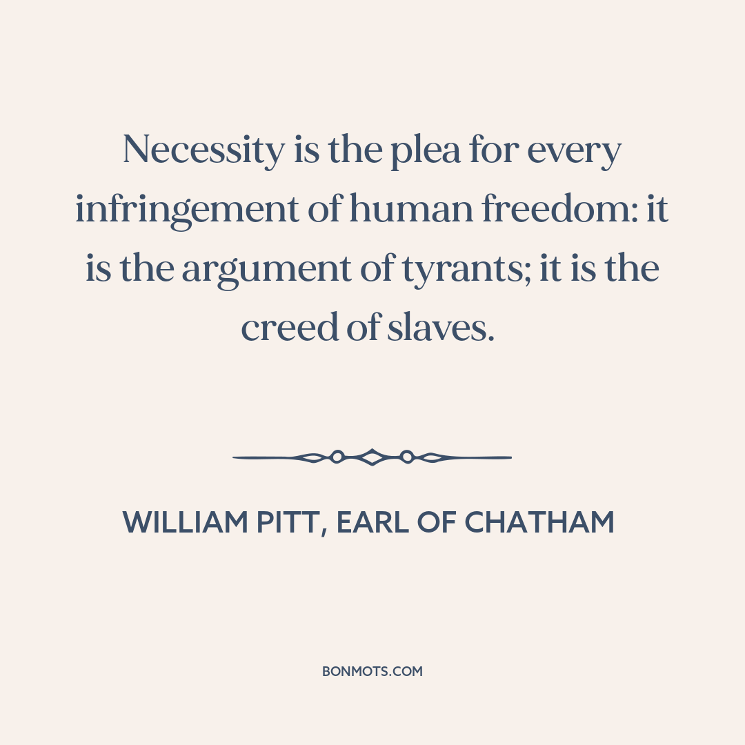 Necessity is the plea for every infringement of human freedom: it is the argument of tyrants; it is the creed of slaves.