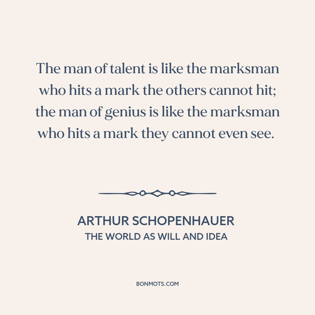 The man of talent is like the marksman who hits a mark the others cannot hit; the man of genius is like the marksman who hits a mark they cannot even see.