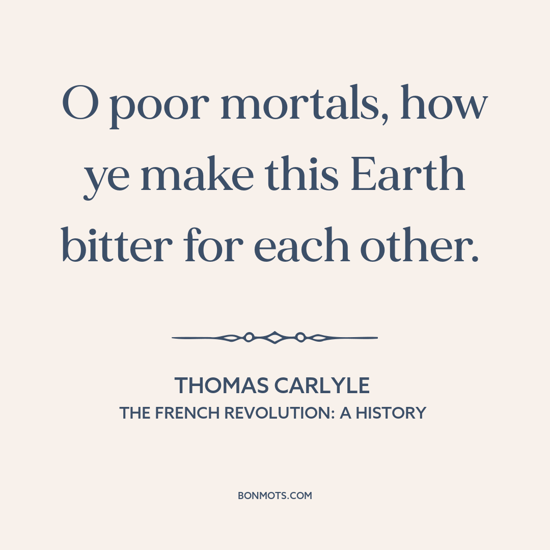 O poor mortals, how ye make this Earth bitter for each other.