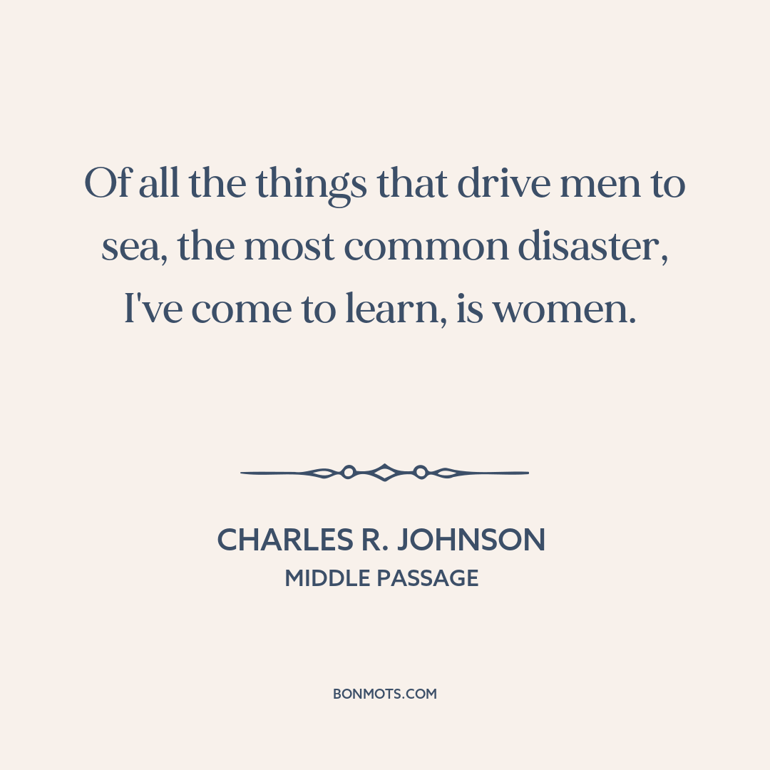 Of all the things that drive men to sea, the most common disaster, I've come to learn, is women.