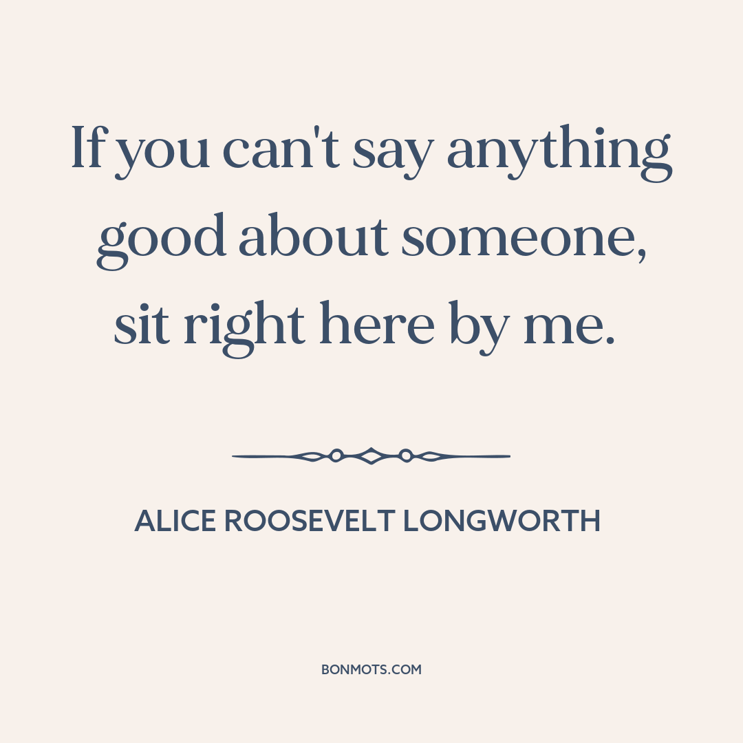 Longworth, Alice Roosevelt. Embroidered on a pillow in her sitting room. c. 1980.