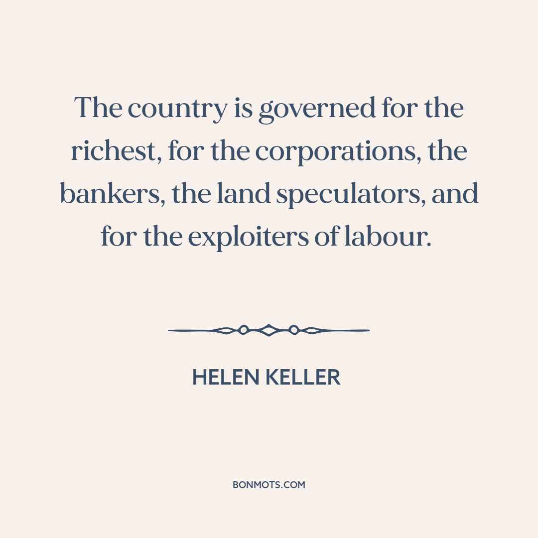 The country is governed for the richest, for the corporations, the bankers, the land speculators, and for the exploiters of labour.