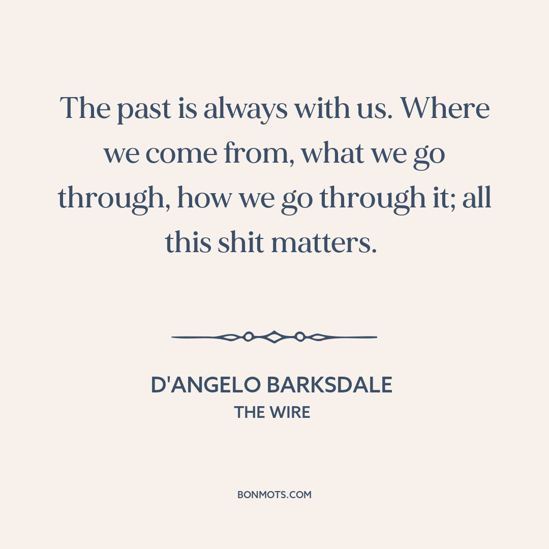 The past is always with us. Where we come from, what we go through, how we go through it; all this shit matters.
