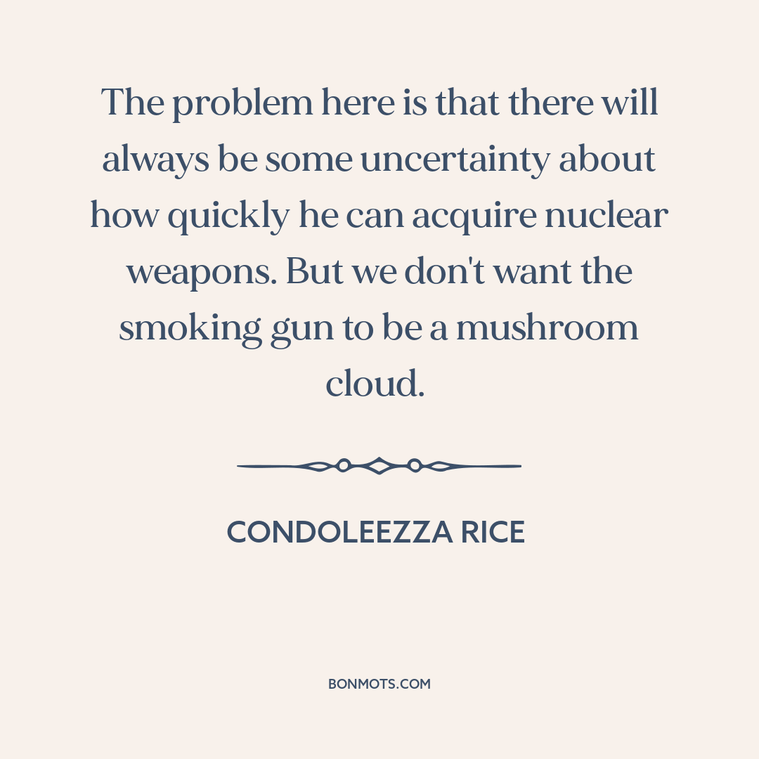 The problem here is that there will always be some uncertainty about how quickly he can acquire nuclear weapons. But we don't want the smoking gun to be a mushroom cloud.