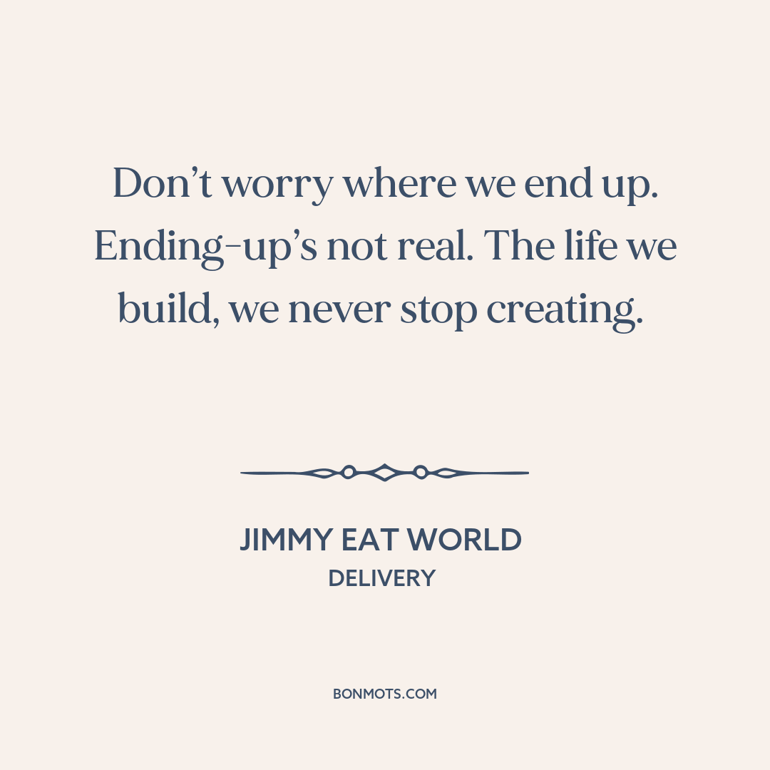 Don’t worry where we end up. Ending-up’s not real. The life we build, we never stop creating.