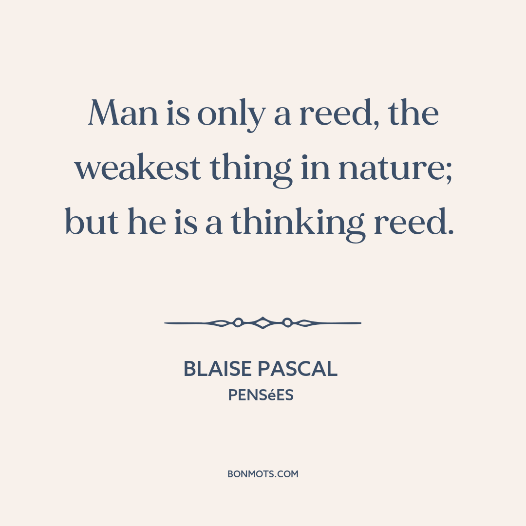 Man is only a reed, the weakest thing in nature; but he is a thinking reed.