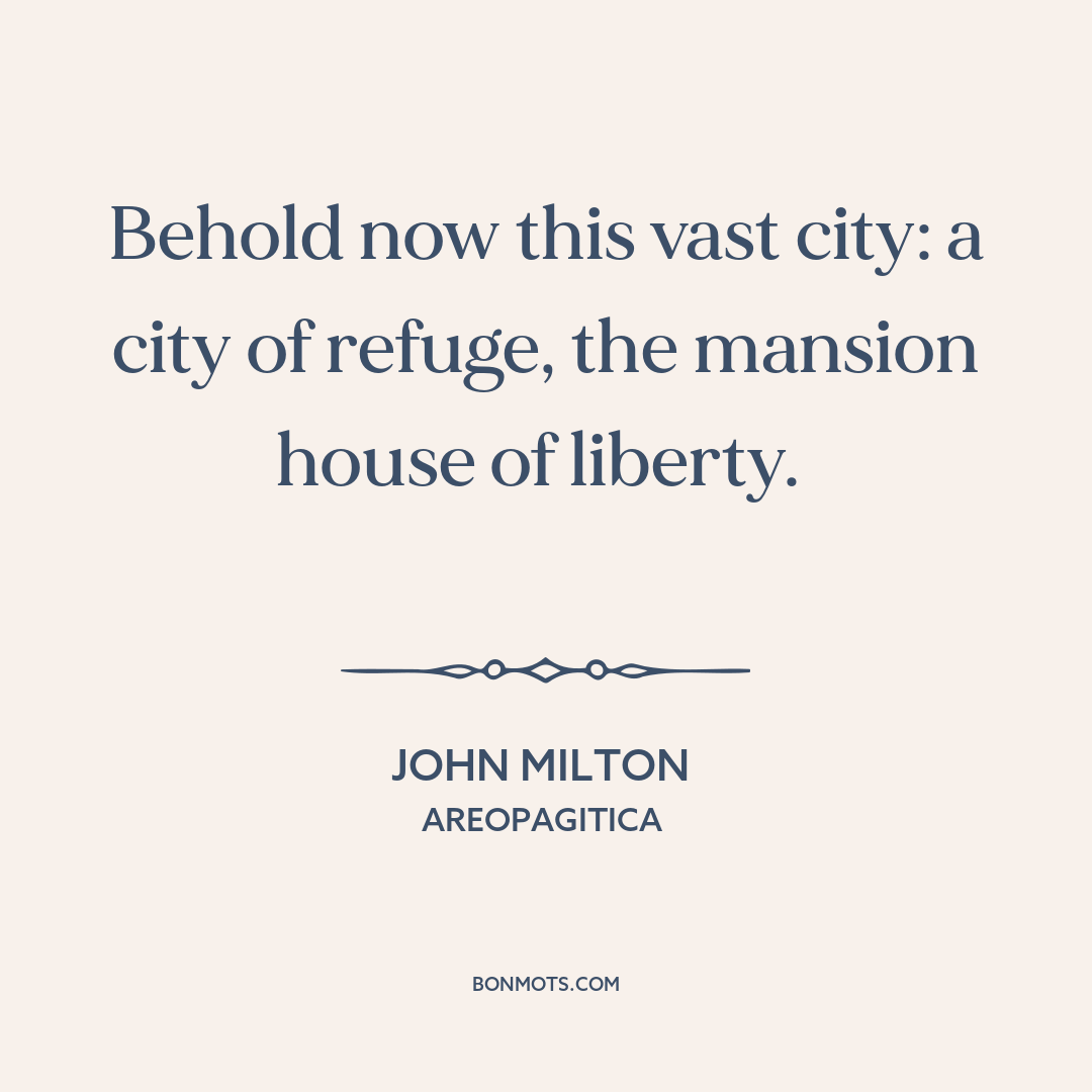 Behold now this vast city: a city of refuge, the mansion house of liberty.