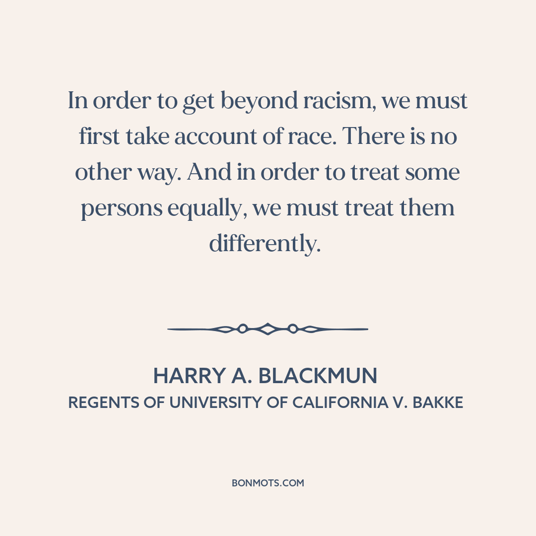 In order to get beyond racism, we must first take account of race. There is no other way. And in order to treat some persons equally, we must treat them differently.