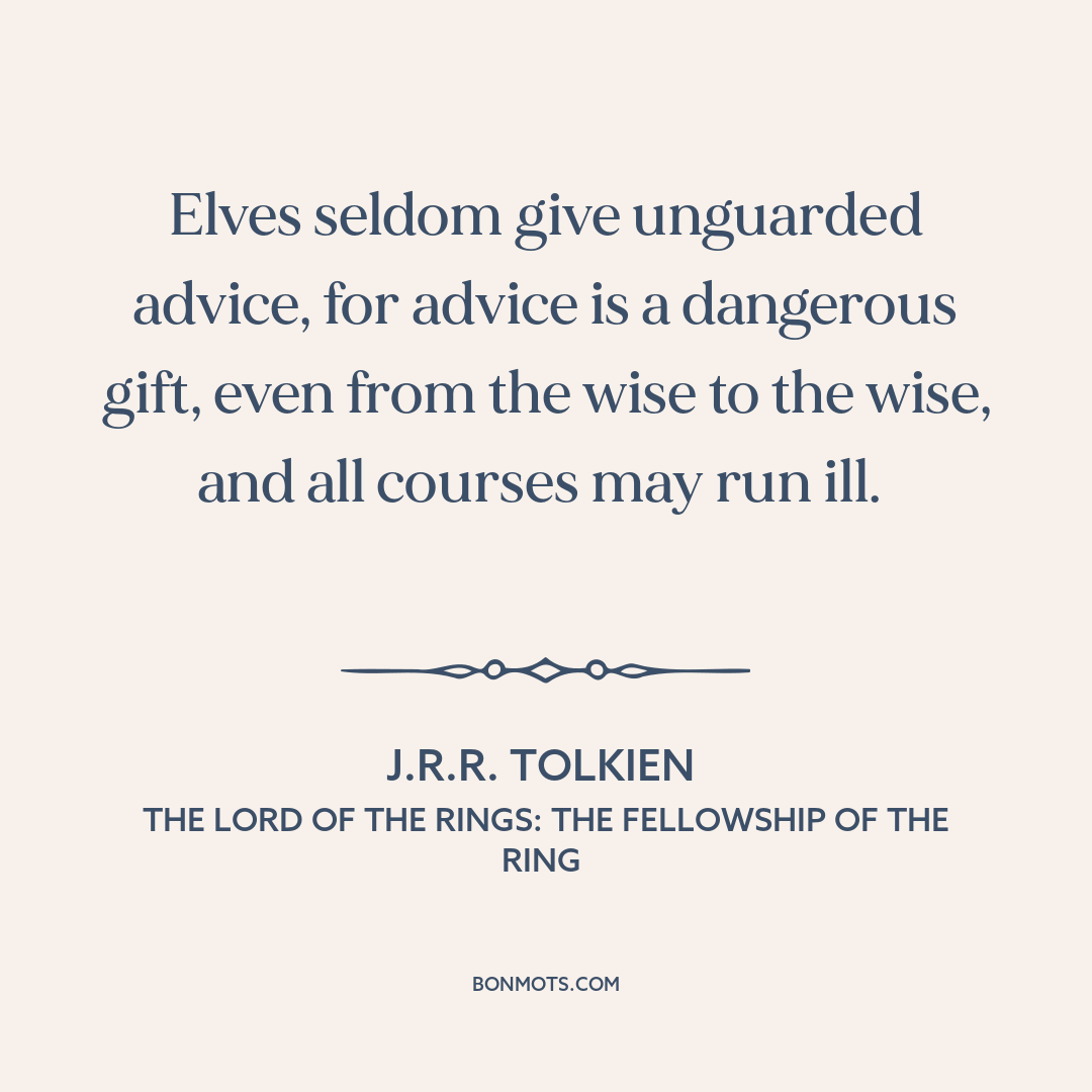Elves seldom give unguarded advice, for advice is a dangerous gift, even from the wise to the wise, and all courses may run ill.