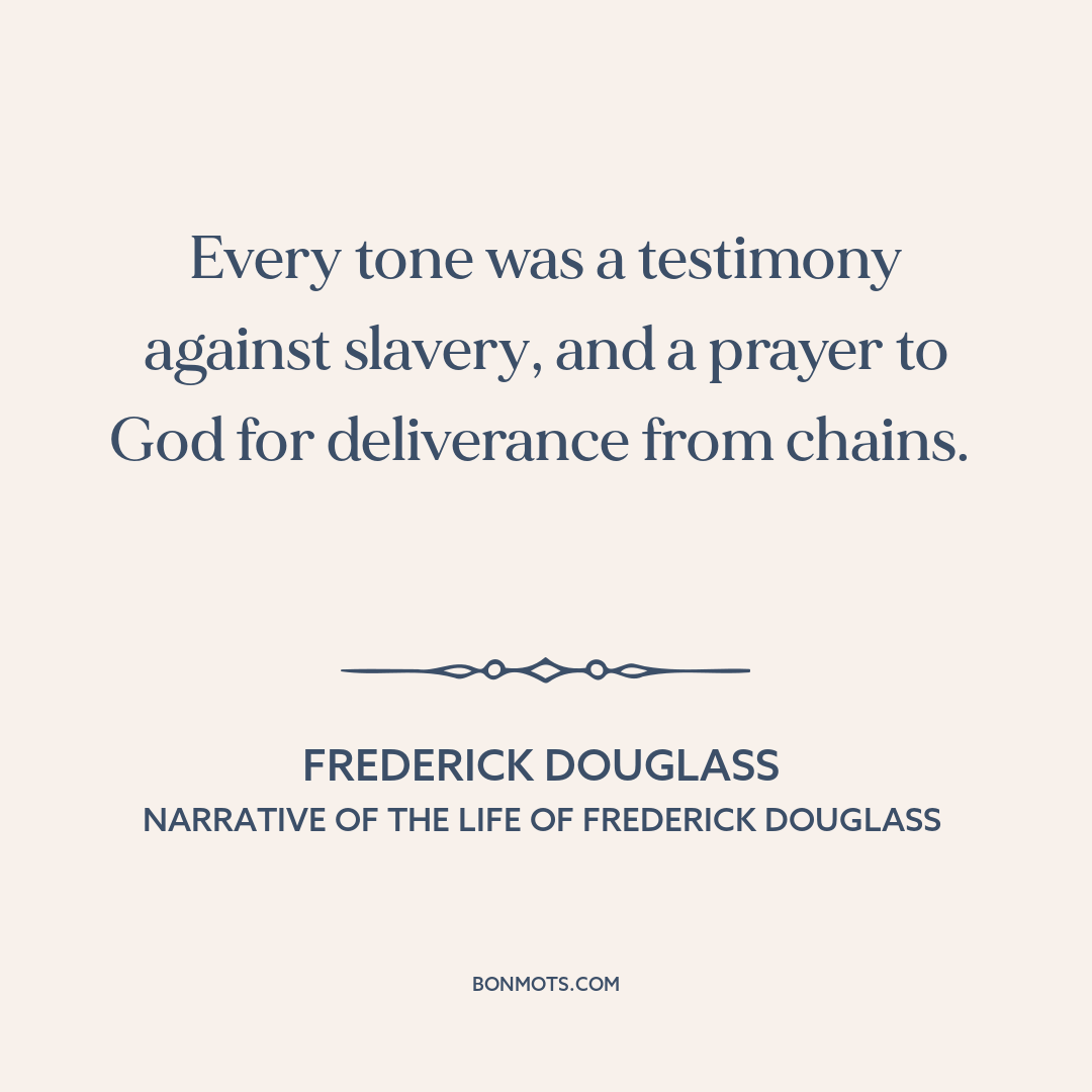 Every tone was a testimony against slavery, and a prayer to God for deliverance from chains.