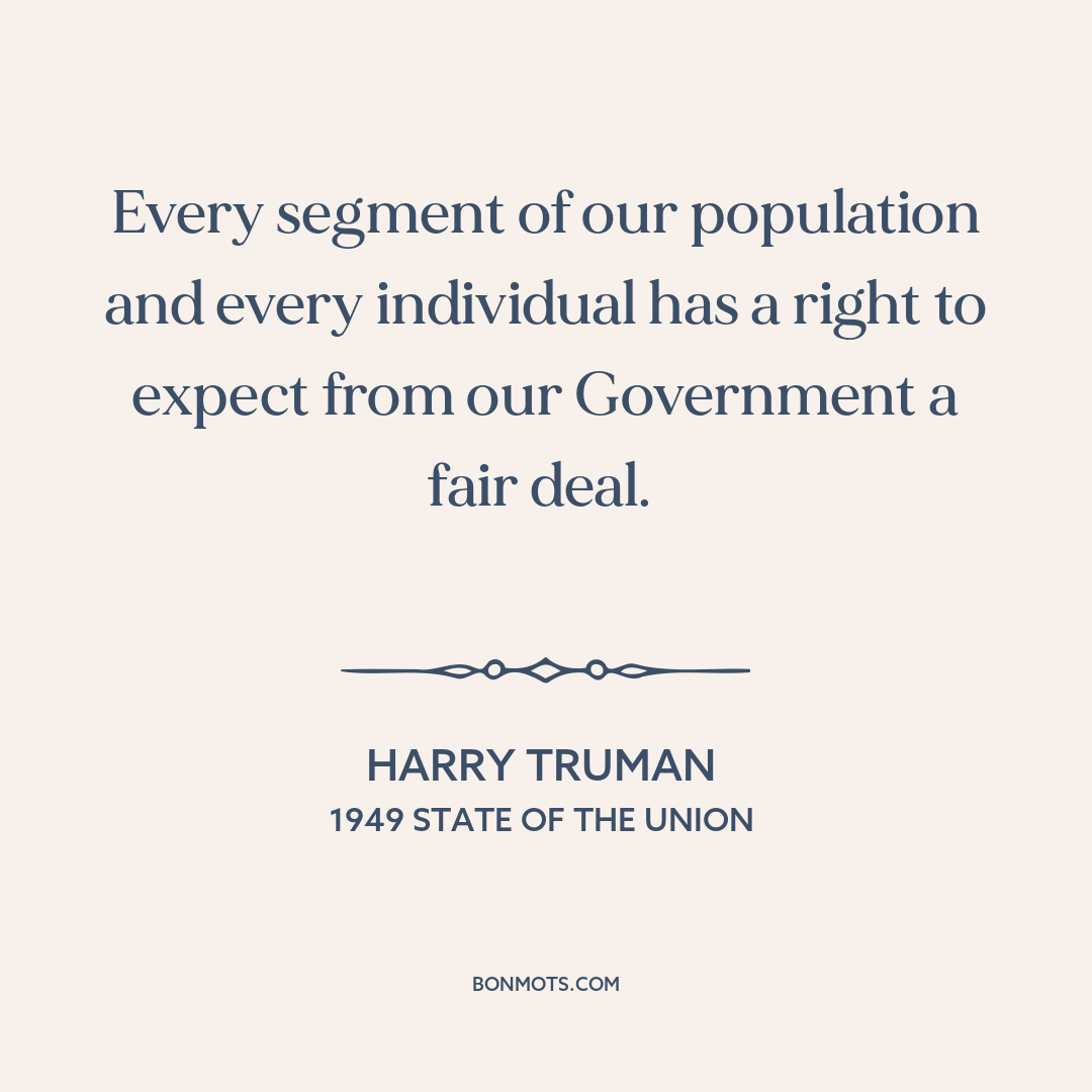 Every segment of our population and every individual has a right to expect from our Government a fair deal.