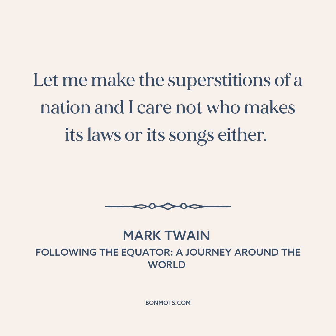 Let me make the superstitions of a nation and I care not who makes its laws or its songs either.