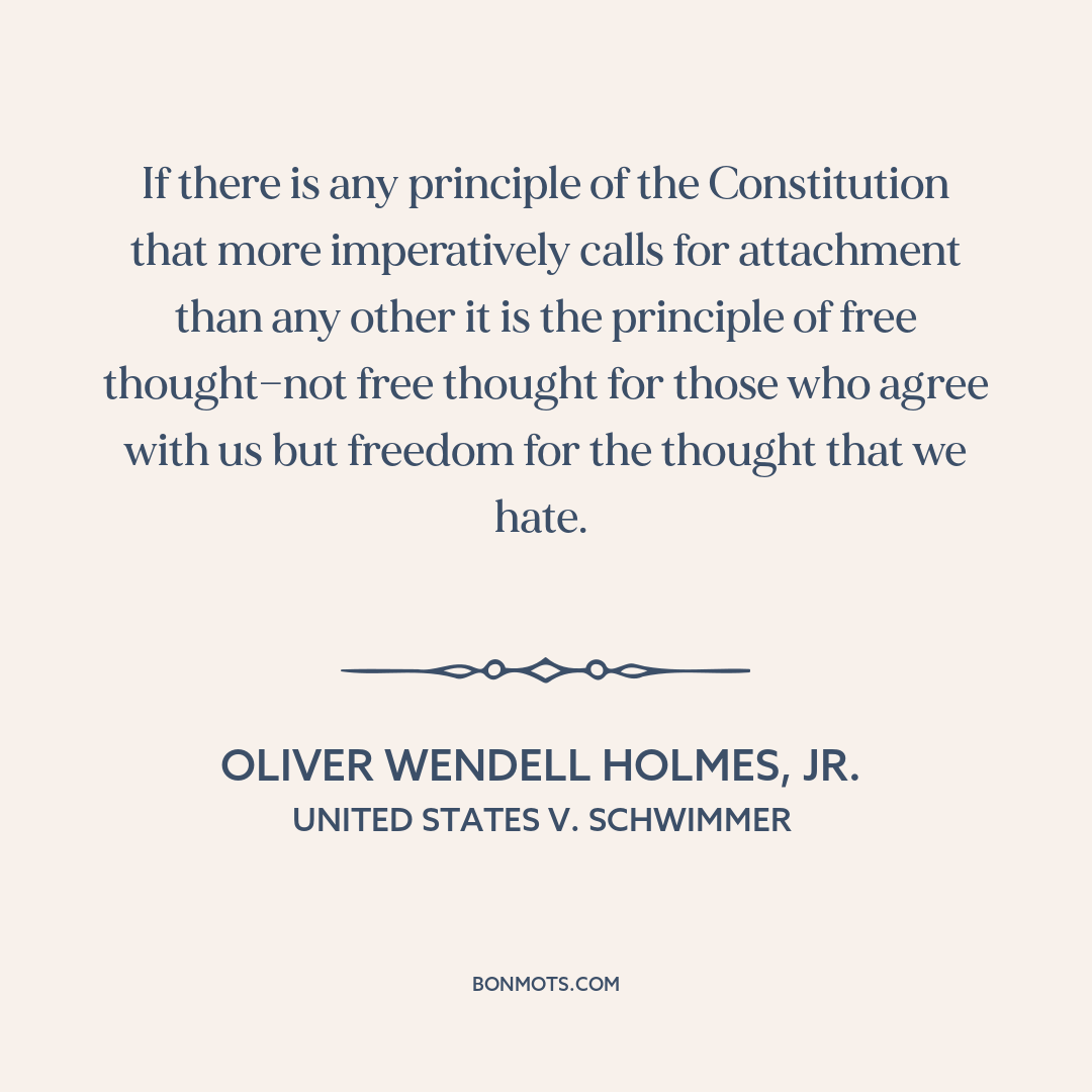 If there is any principle of the Constitution that more imperatively calls for attachment than any other it is the principle of free thought—not free thought for those who agree with us but freedom for the thought that we hate.