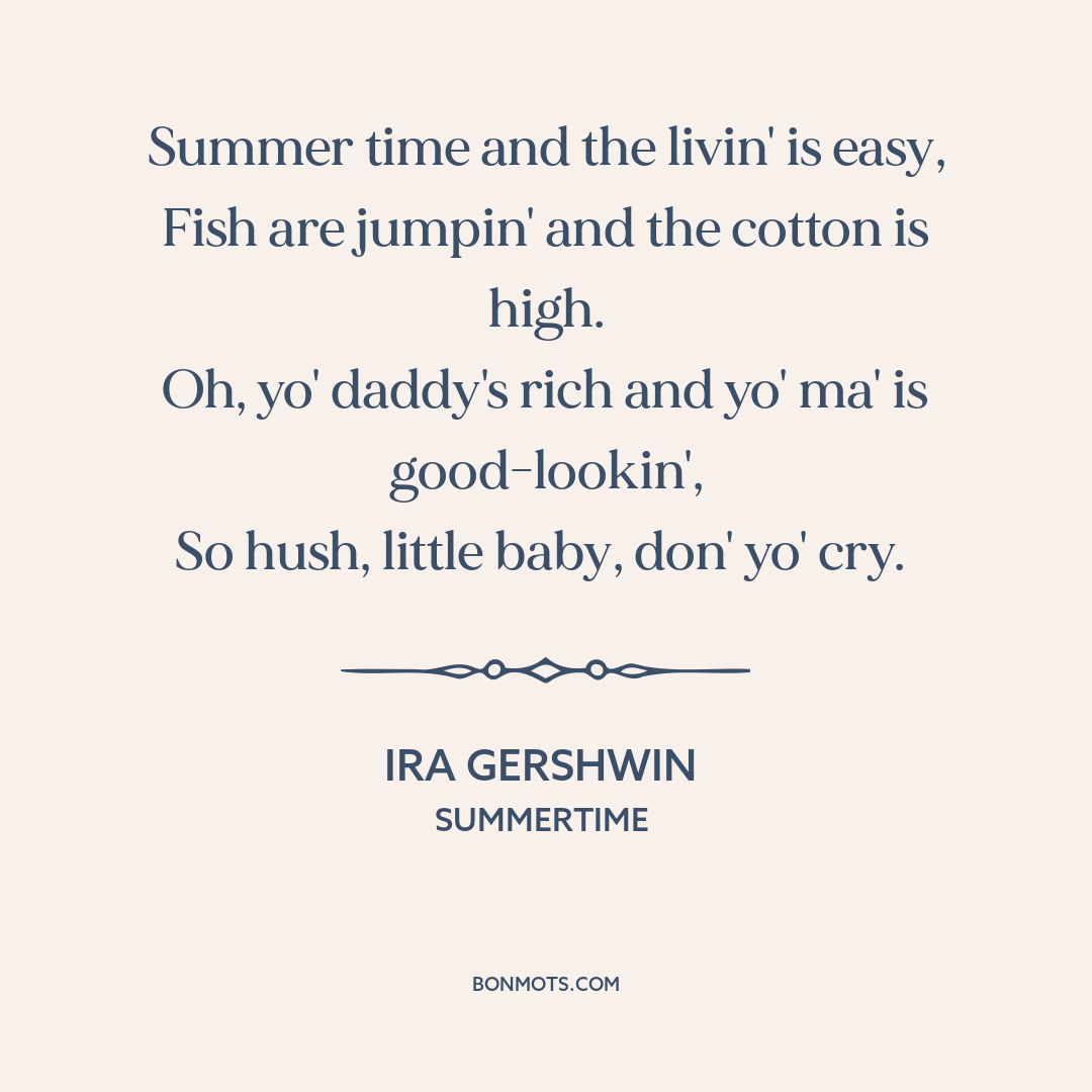 Gershwin, Ira and DuBose Heyward. "Summertime." Porgy and Bess. Composed by George Gershwin. 1935, Colonial Theatre, Boston, MA, USA.