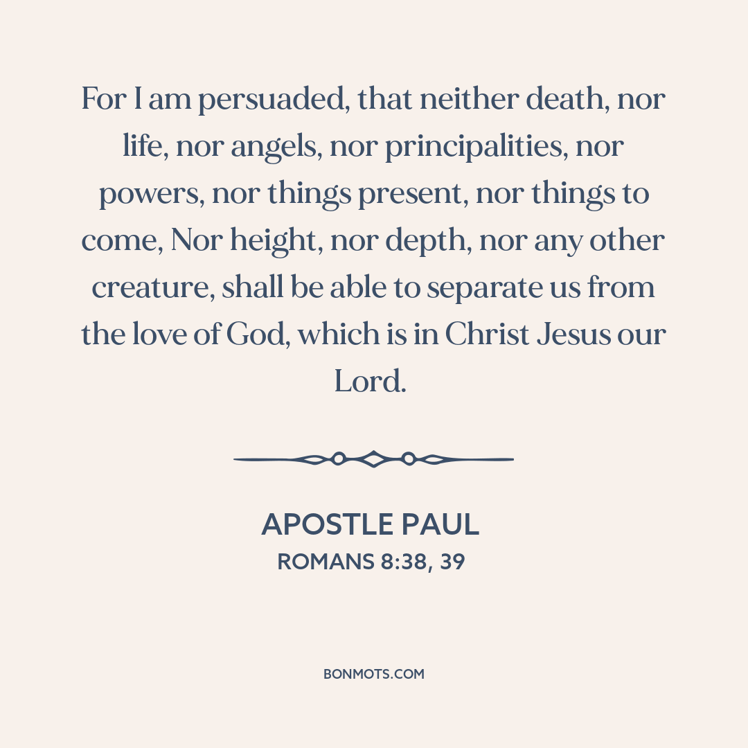 For I am persuaded, that neither death, nor life, nor angels, nor principalities, nor powers, nor things present, nor things to come, Nor height, nor depth, nor any other creature, shall be able to separate us from the love of God, which is in Christ Jesus our Lord.