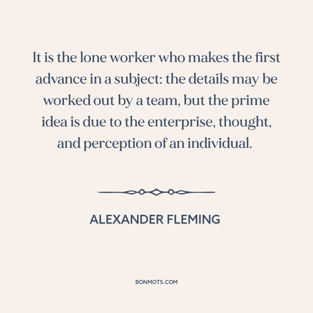It is the lone worker who makes the first advance in a subject: the details may be worked out by a team, but the prime idea is due to the enterprise, thought, and perception of an individual.