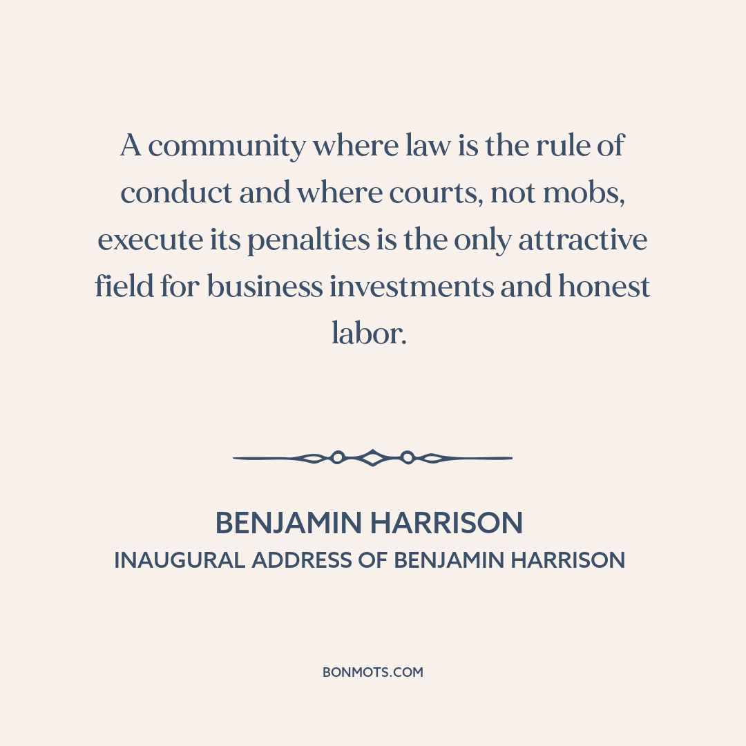 A community where law is the rule of conduct and where courts, not mobs, execute its penalties is the only attractive field for business investments and honest labor.