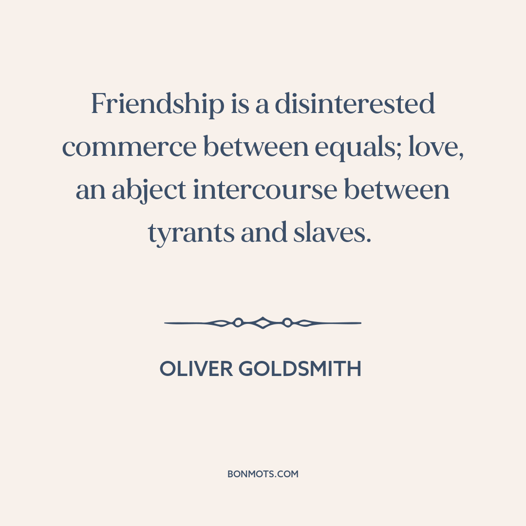 Friendship is a disinterested commerce between equals; love, an abject intercourse between tyrants and slaves.