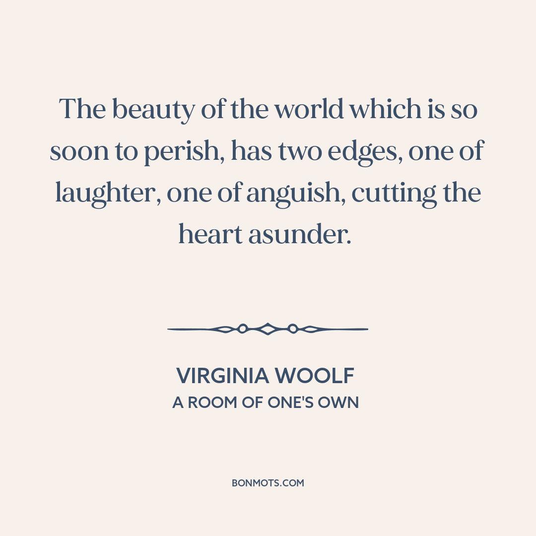 The beauty of the world which is so soon to perish, has two edges, one of laughter, one of anguish, cutting the heart asunder.