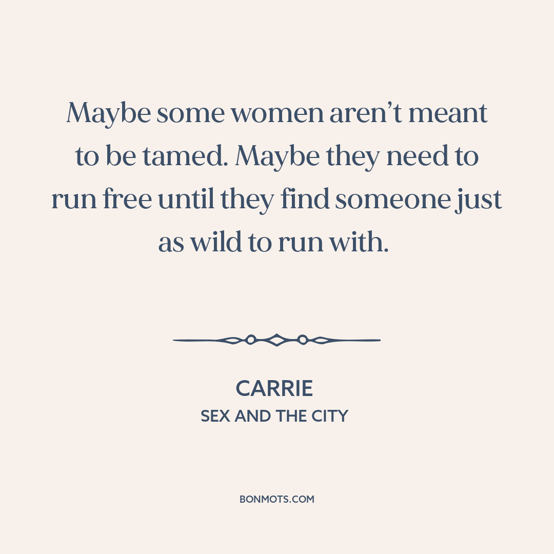 Maybe some women aren’t meant to be tamed. Maybe they need to run free until they find someone just as wild to run with.