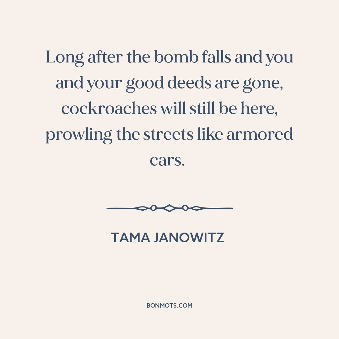 Long after the bomb falls and you and your good deeds are gone, cockroaches will still be here, prowling the streets like armored cars.
