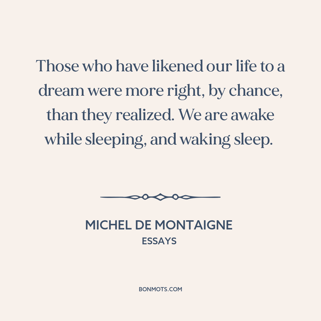 Those who have likened our life to a dream were more right, by chance, than they realized. We are awake while sleeping, and waking sleep.