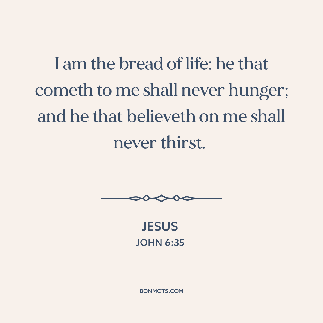 I am the bread of life: he that cometh to me shall never hunger; and he that believeth on me shall never thirst.