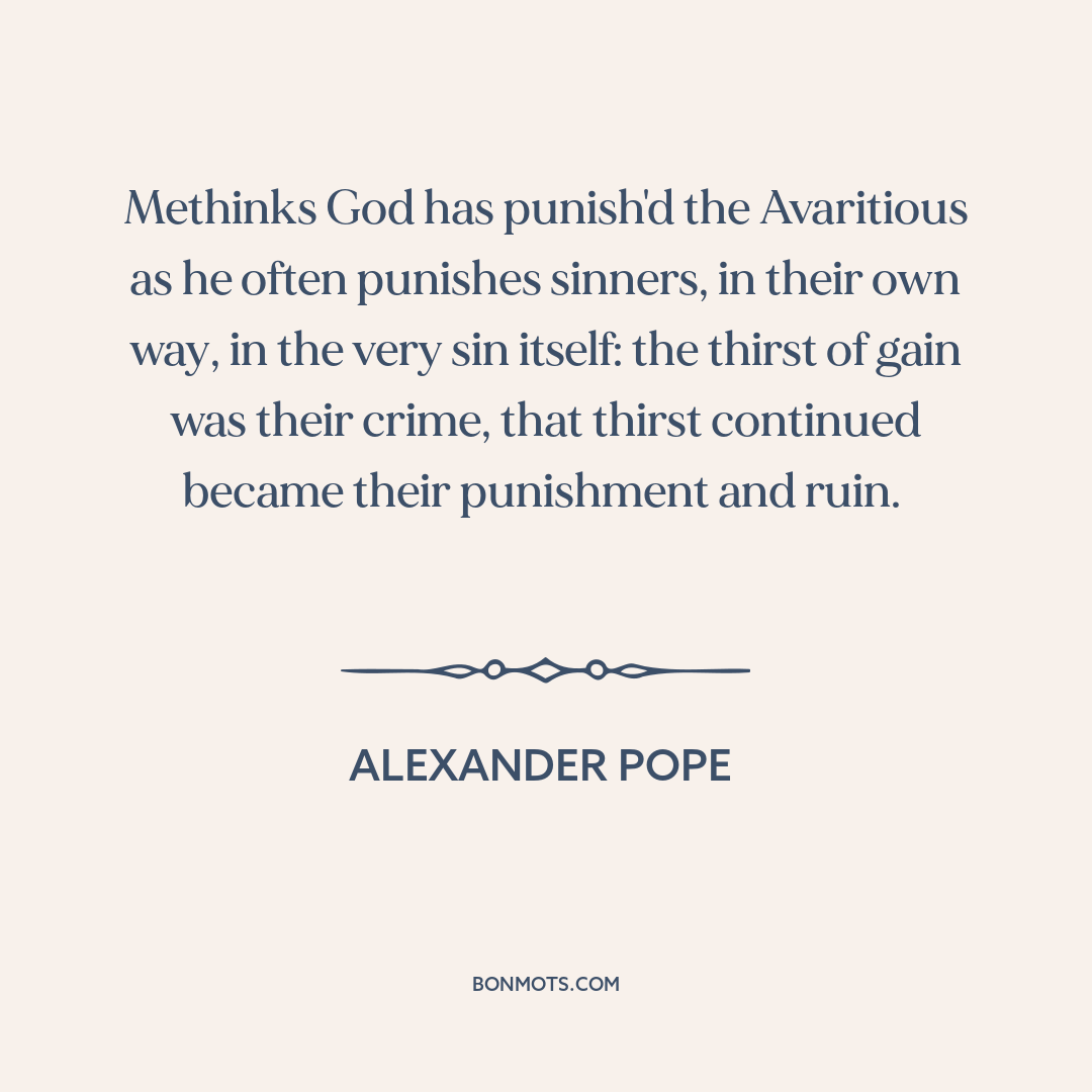 Methinks God has punish'd the Avaritious as he often punishes sinners, in their own way, in the very sin itself: the thirst of gain was their crime, that thirst continued became their punishment and ruin.