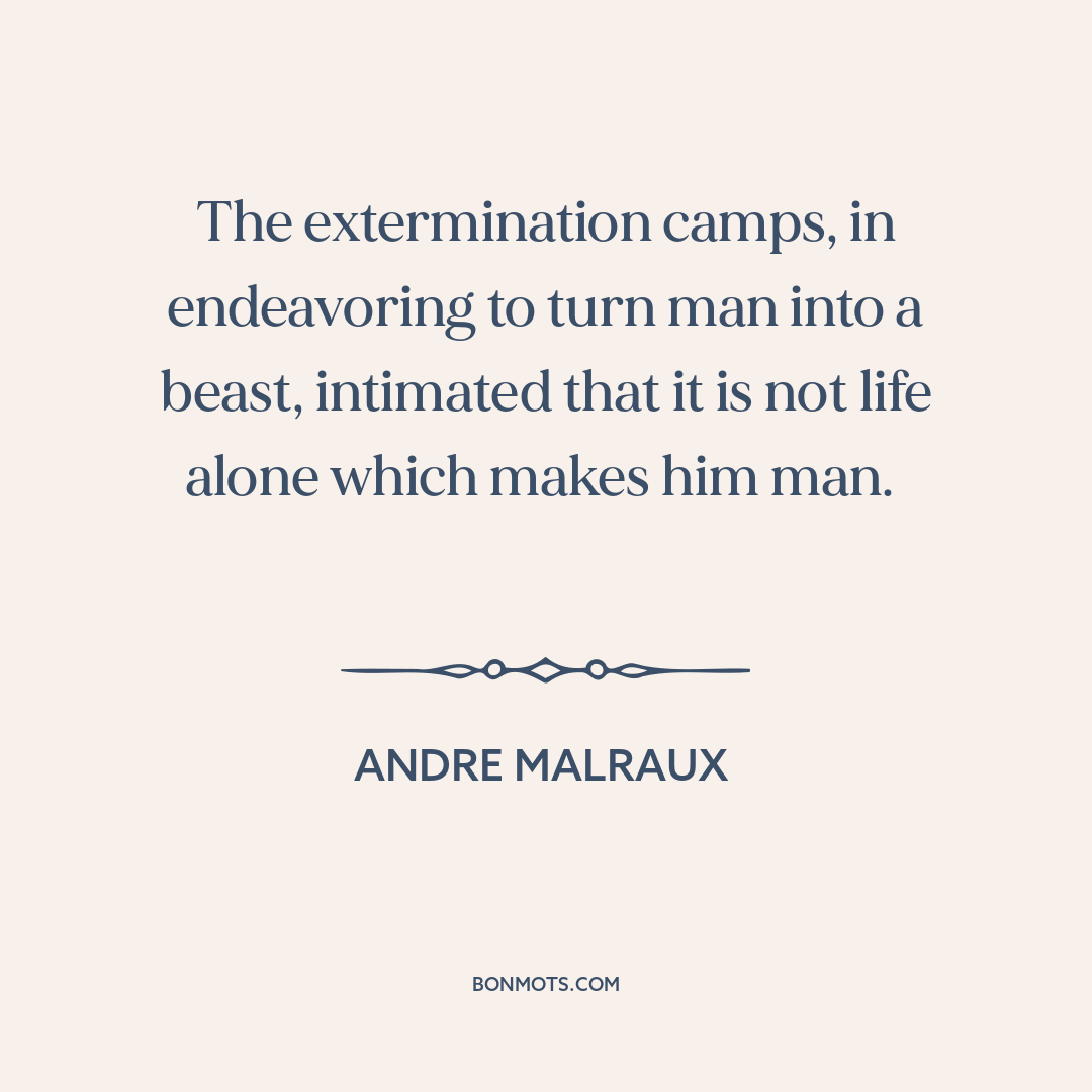 The extermination camps, in endeavoring to turn man into a beast, intimated that it is not life alone which makes him man.