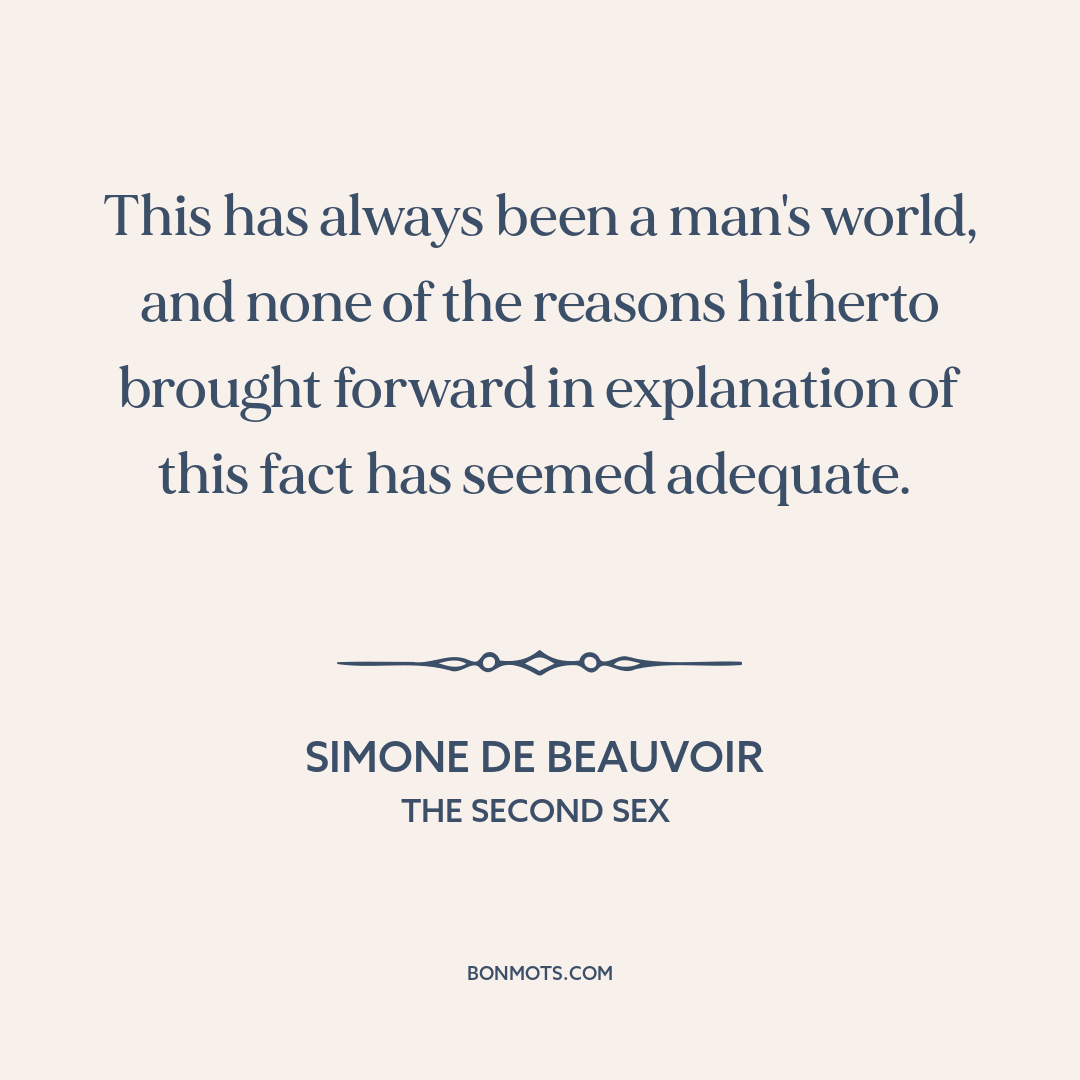 This has always been a man's world, and none of the reasons hitherto brought forward in explanation of this fact has seemed adequate.