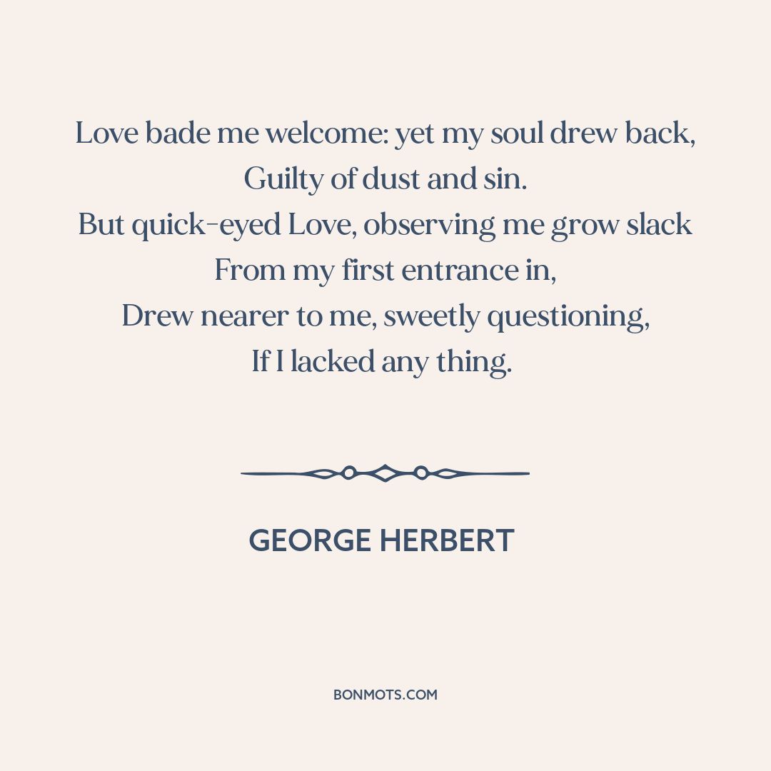 Love bade me welcome: yet my soul drew back,