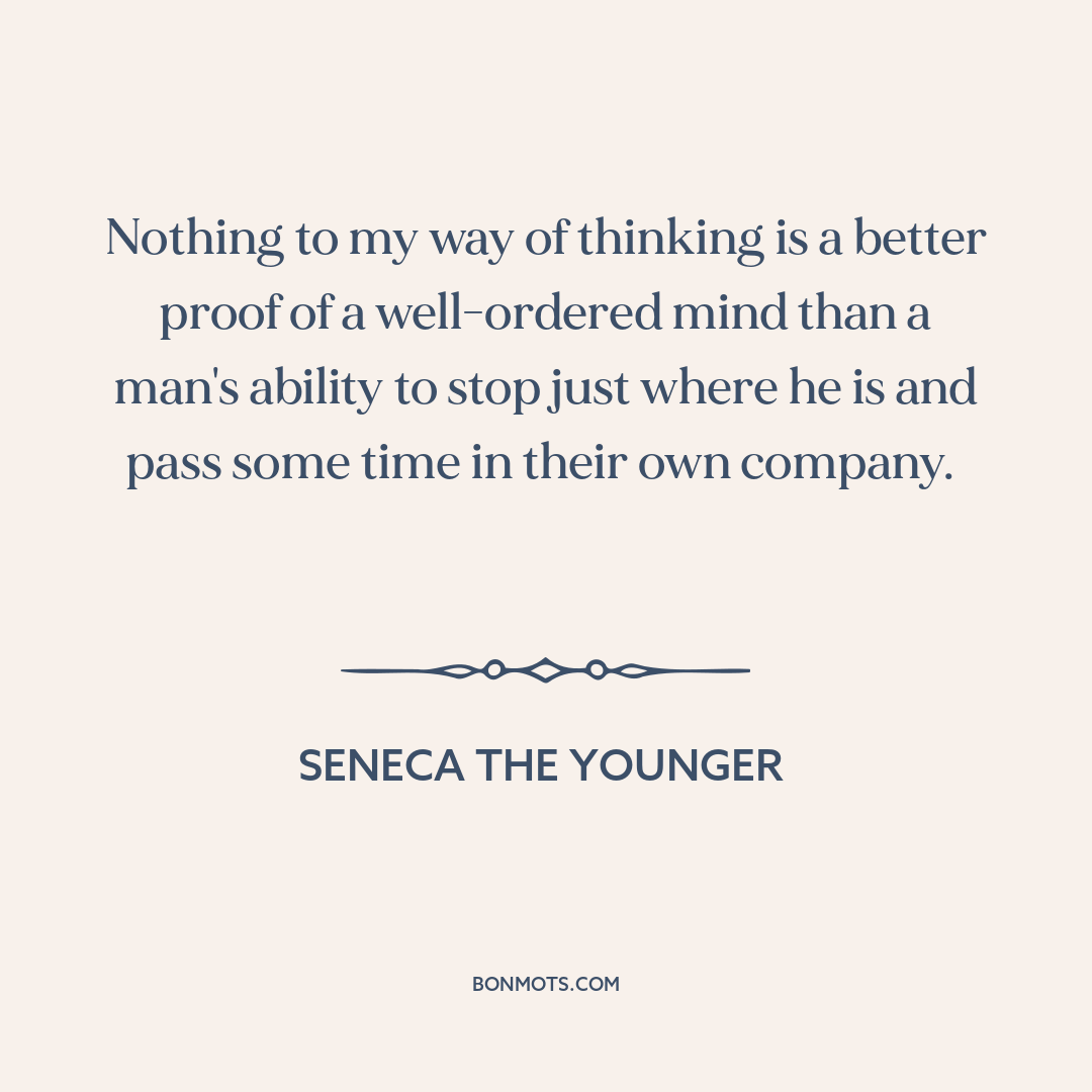 Nothing to my way of thinking is a better proof of a well-ordered mind than a man's ability to stop just where he is and pass some time in their own company.