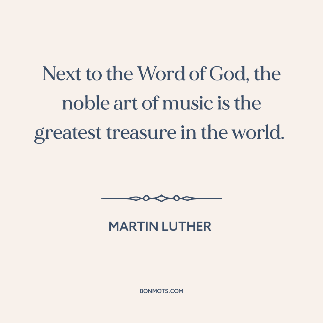 Next to the Word of God, the noble art of music is the greatest treasure in the world.
