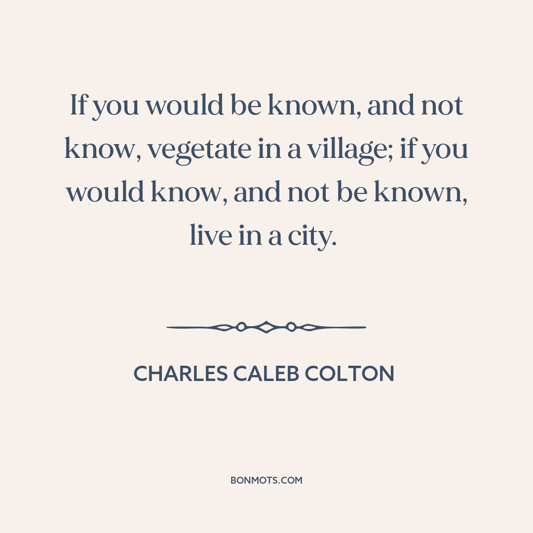 If you would be known, and not know, vegetate in a village; if you would know, and not be known, live in a city.