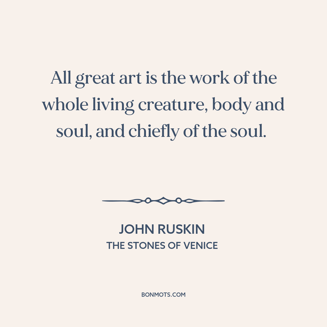 All great art is the work of the whole living creature, body and soul, and chiefly of the soul.