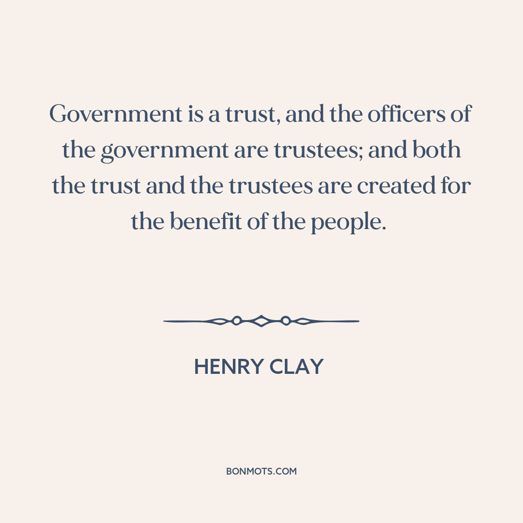 Government is a trust, and the officers of the government are trustees; and both the trust and the trustees are created for the benefit of the people.