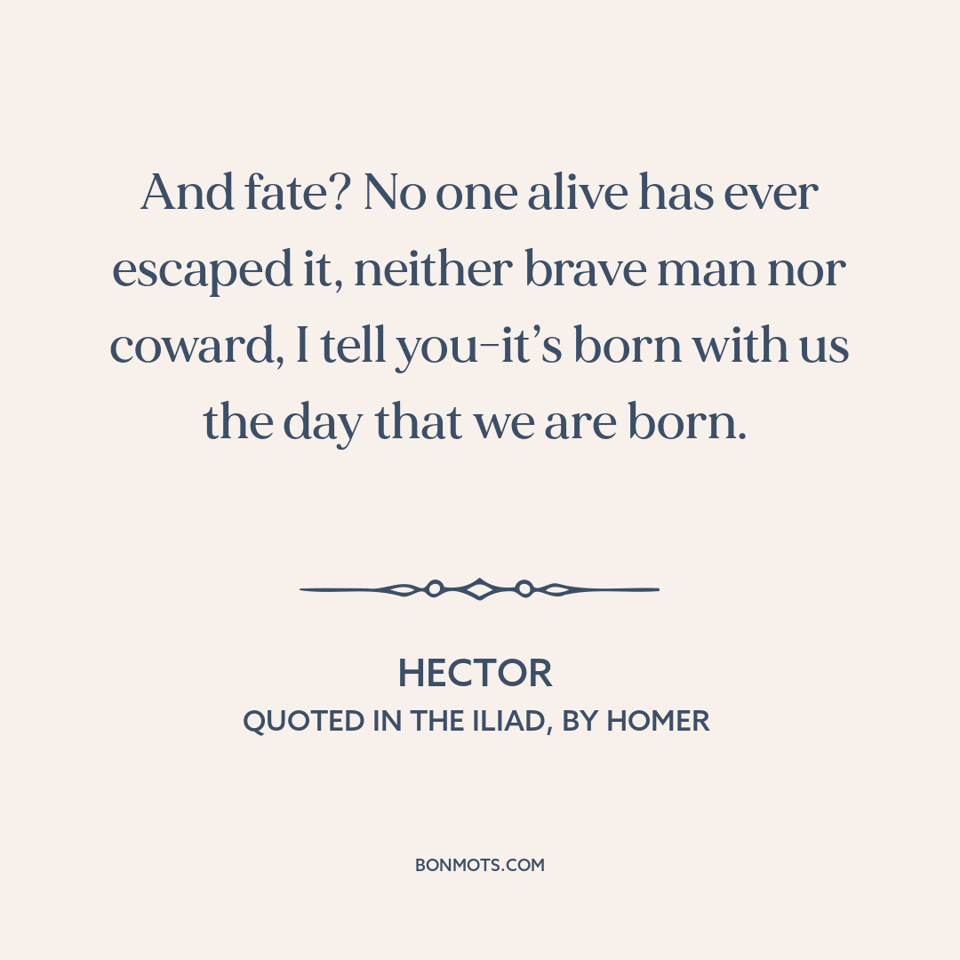 And fate? No one alive has ever escaped it, neither brave man nor coward, I tell you-it’s born with us the day that we are born.