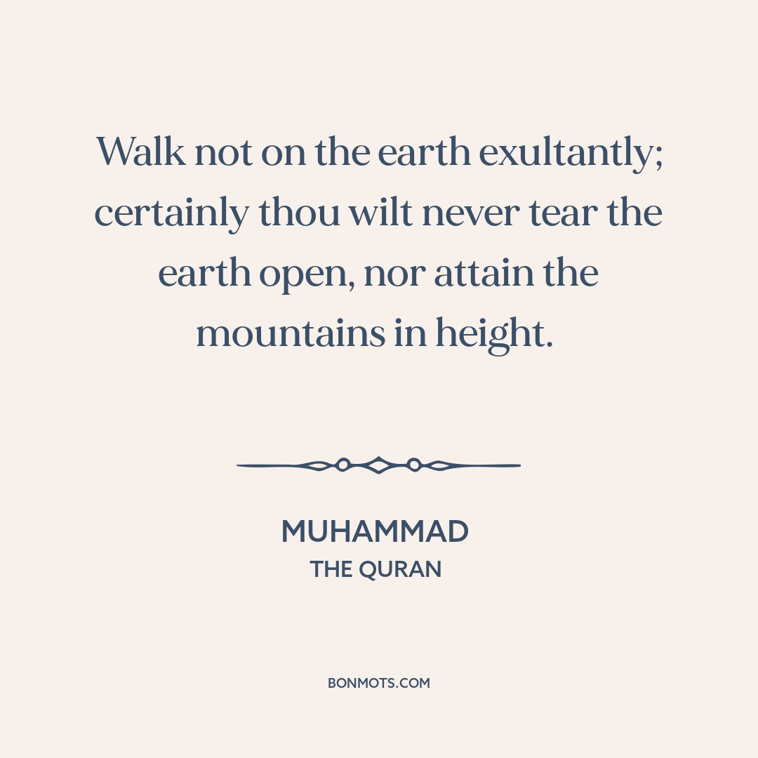 Walk not on the earth exultantly; certainly thou wilt never tear the earth open, nor attain the mountains in height.