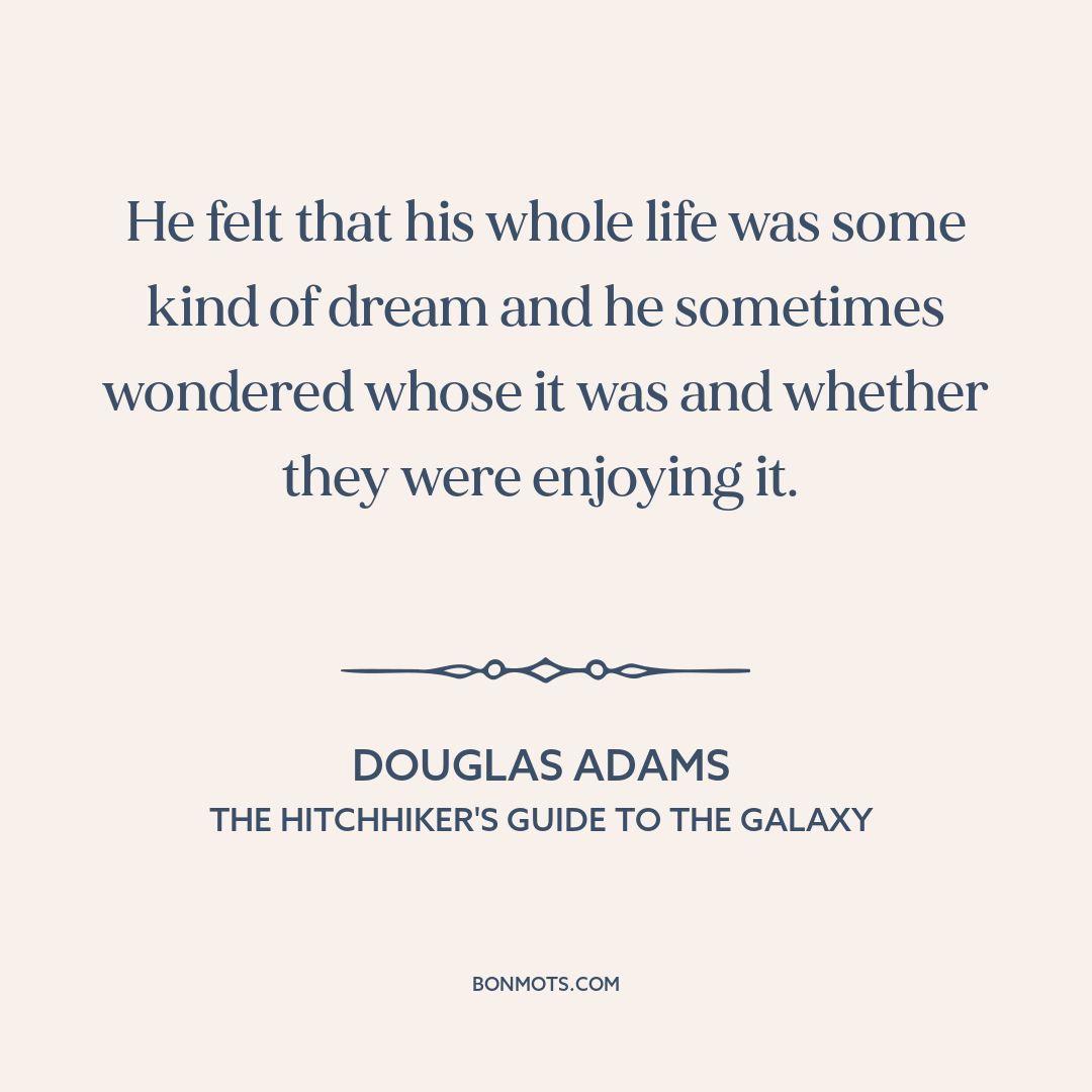 He felt that his whole life was some kind of dream and he sometimes wondered whose it was and whether they were enjoying it.