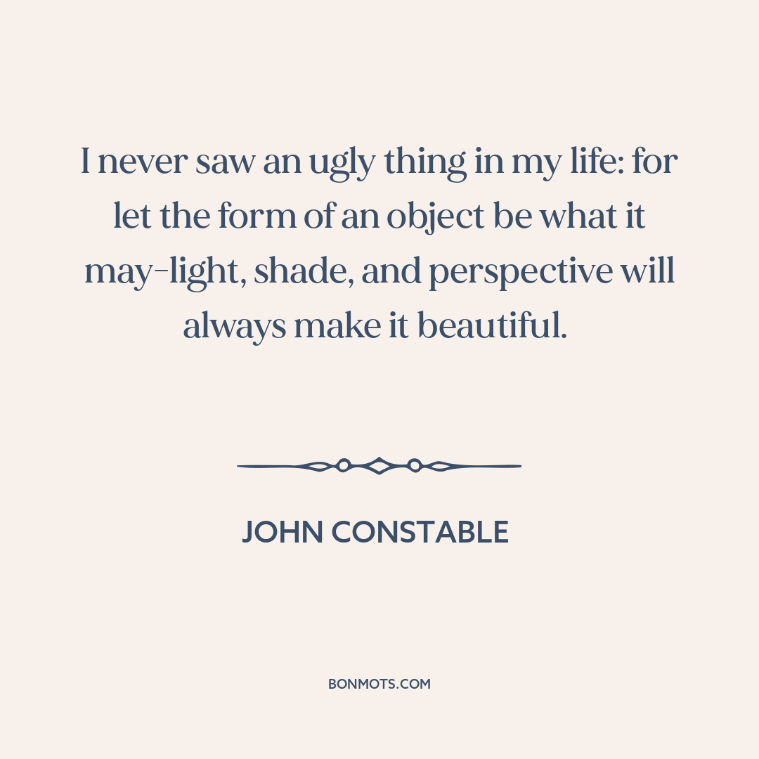 I never saw an ugly thing in my life: for let the form of an object be what it may-light, shade, and perspective will always make it beautiful.