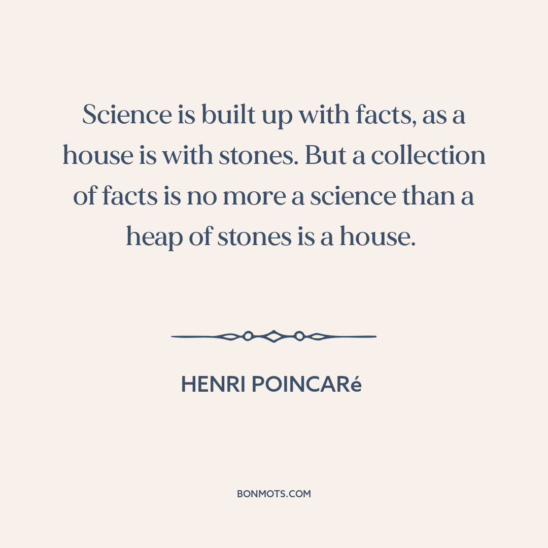 Science is built up with facts, as a house is with stones. But a collection of facts is no more a science than a heap of stones is a house.