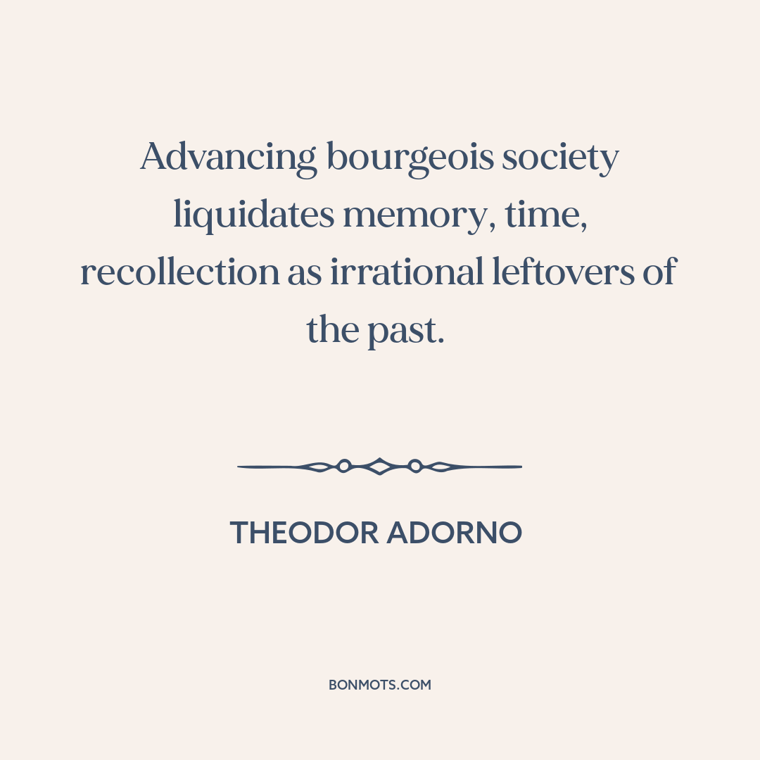 Advancing bourgeois society liquidates memory, time, recollection as irrational leftovers of the past.