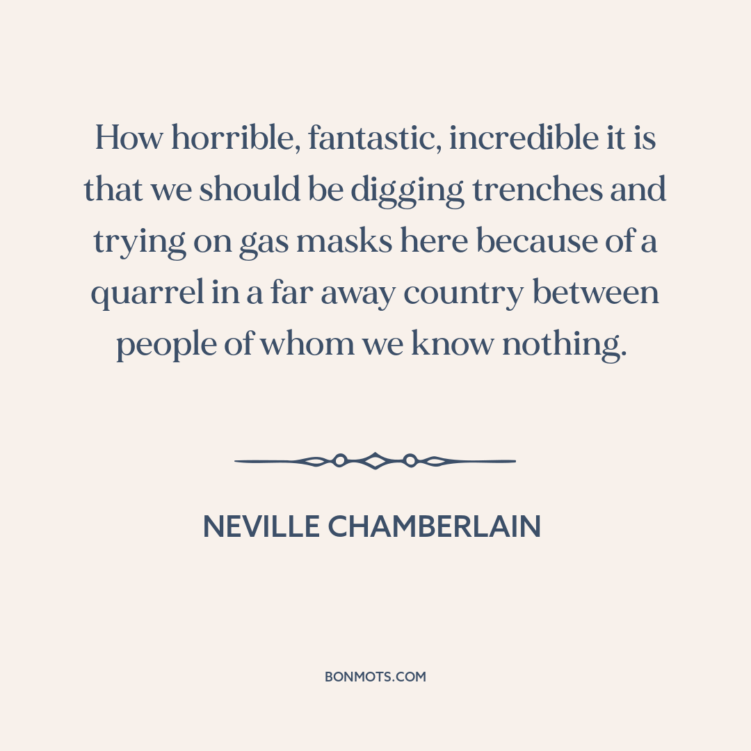 How horrible, fantastic, incredible it is that we should be digging trenches and trying on gas masks here because of a quarrel in a far away country between people of whom we know nothing.
