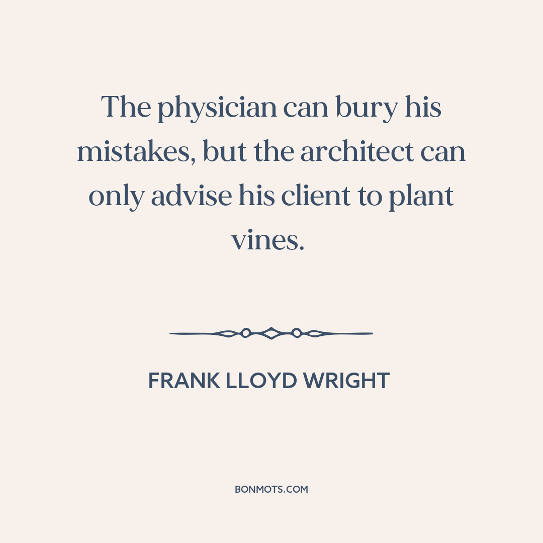 The physician can bury his mistakes, but the architect can only advise his client to plant vines.