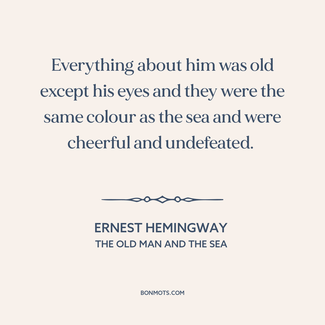 Everything about him was old except his eyes and they were the same colour as the sea and were cheerful and undefeated.